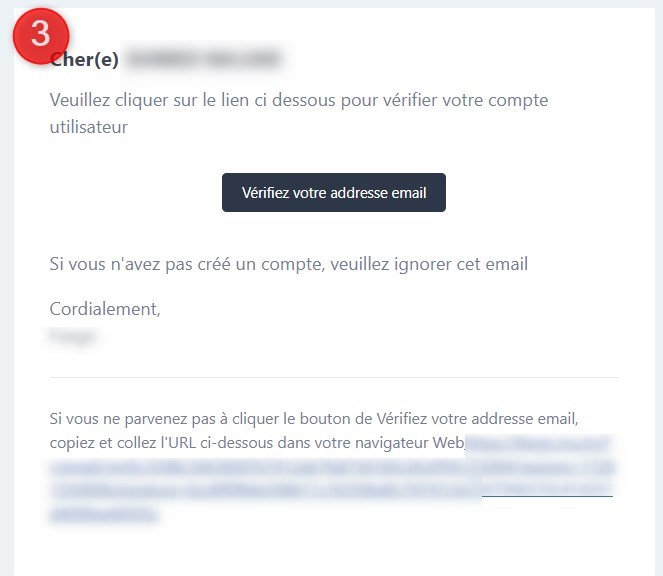 Vous recevez immédiatement un émail de vérification sur votre adresse émail, vous cliquez pour activer votre compte