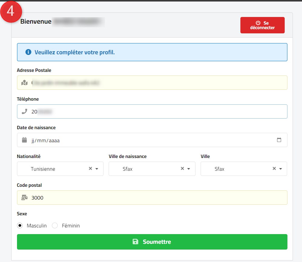 4- Veuillez compléter / vérifier vos données de profil